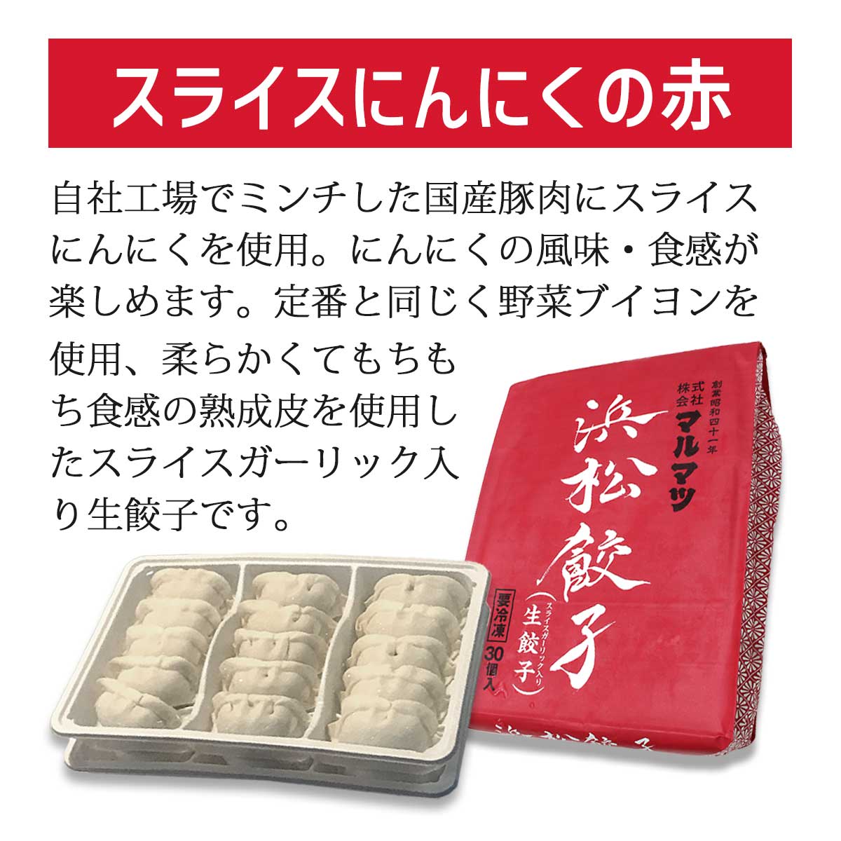 餃子 30個 浜松餃子 家庭用 マルマツ スライスガーリック入り 冷凍生餃子 国産素材主原料のぎょうざ にんにくの赤 お取り寄せ