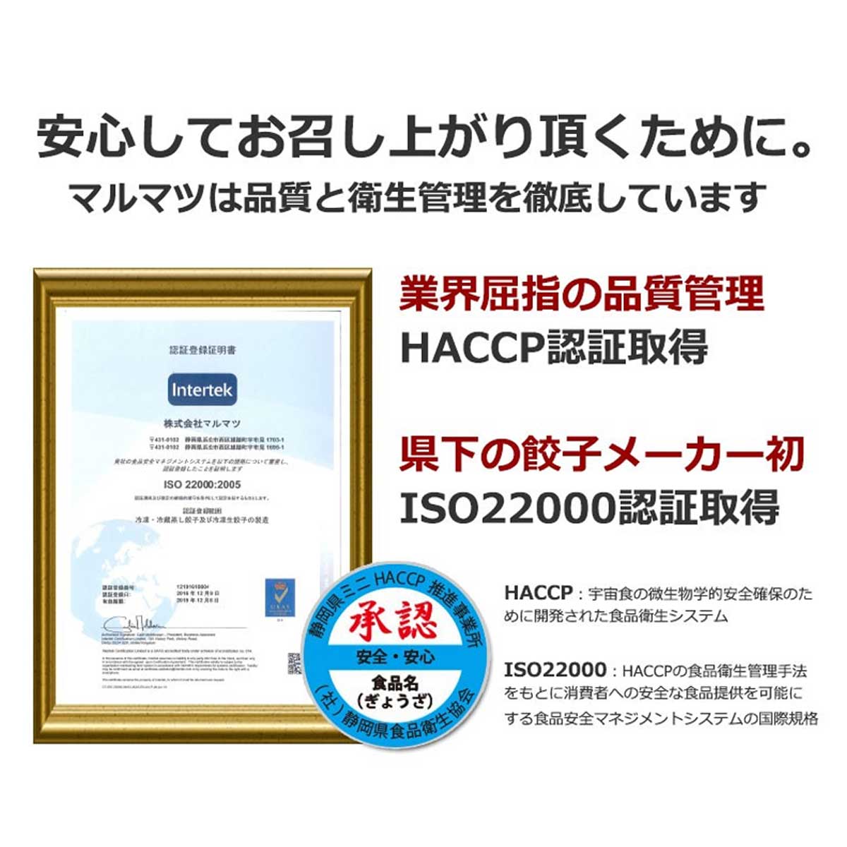 餃子の街浜松で50年愛されてきたマルマツの餃子です。ニラを多めに使用。ニラに含まれる硫化アリルが豚肉のビタミンB1の吸収を促進。疲労回復をサポート。ニラの風味と食感をお楽しみいただけます。化学調味料・保存料は一切使用せず、風味と後味を活かすため野菜ブイヨンを使用。皮は、柔らかくてもちもち食感の熟成皮を使用。包みたてを瞬間冷凍して生の食感をそのままお届け致しますので、ご家庭で加熱調理してからお召し上がりください。1パックには、大きめの一粒20グラムの生餃子が30粒が入っています。